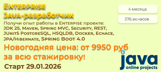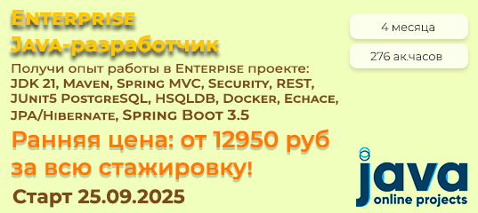 - Начиная с 4-го занятия, участники разрабатывают собственный выпускной проект на стеке Maven/ Spring MVC, Security/ Hibernate/ REST, ревью которого входит в участие с проверкой.