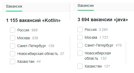 Почти треть вакансий (а в некоторых регионах больше) требуют владения Kotlin!